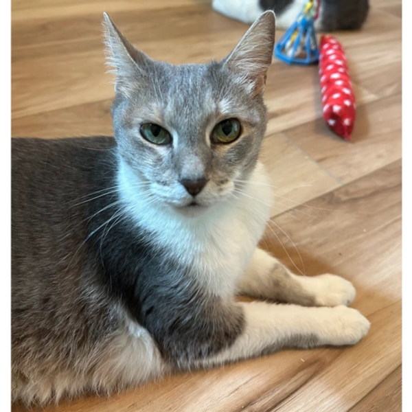 She enjoys being social and would do best in a home with another cat. She has done well with calm children and would thrive in a peaceful environment where she can move at her own pace. Jashika does have some hip arthritis and currently receives monthly Solensia injections, which help keep her comfortable. Her wobbly hips may slow her down, but they do not slow her love.